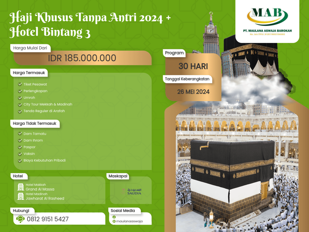 Haji Khusus Tanpa Antri 2024 + Hotel Bintang 3